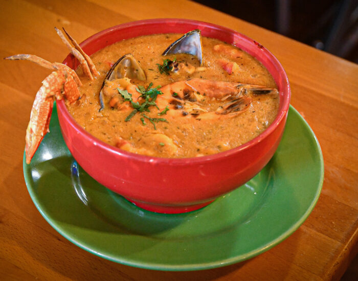 Sango de Mariscos, arroz y aguacate Seafood Green plantain stew…