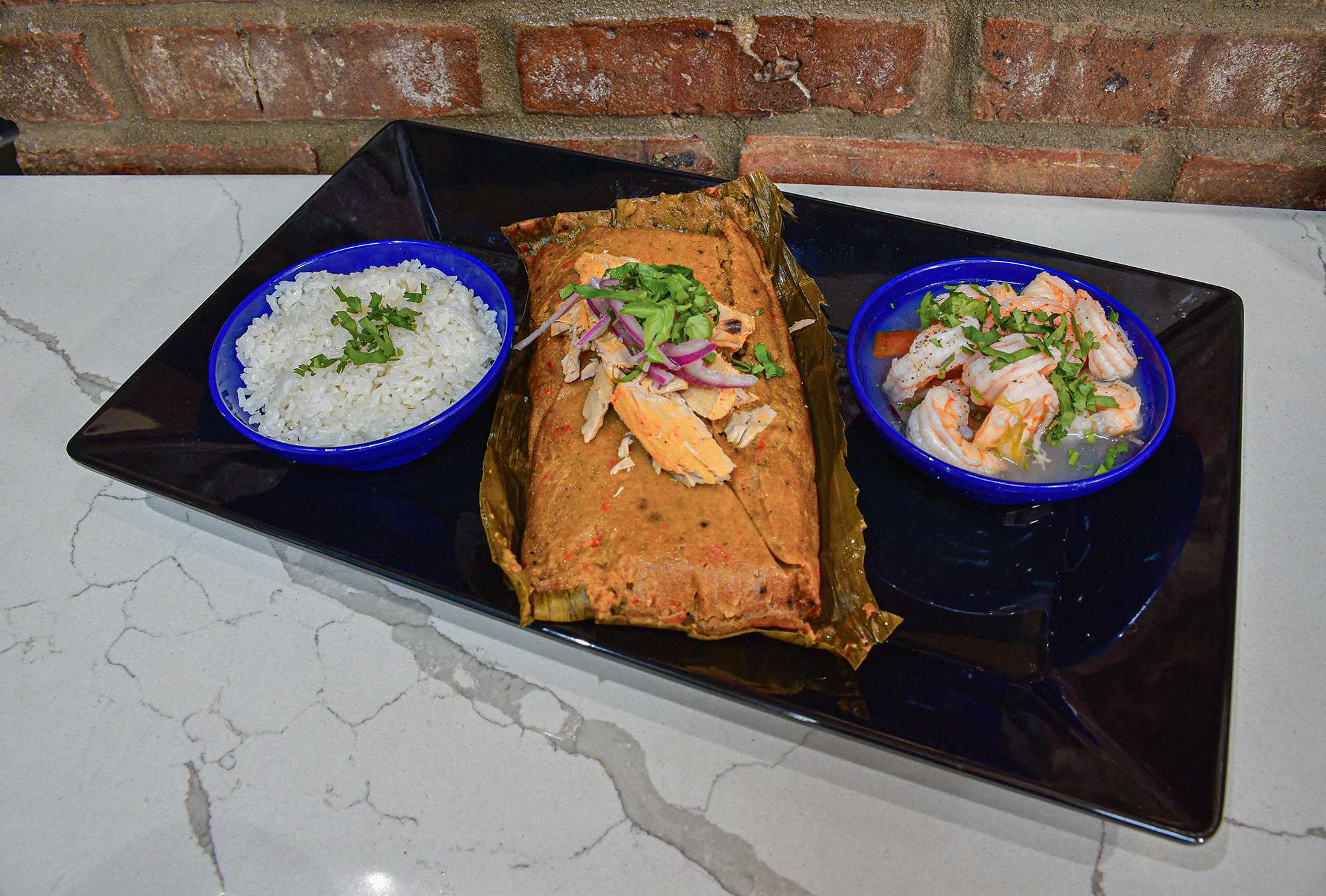 Camarones al ajillo, camarones empanizados, colonche de camarones, arroz con camarones servdos con platano frito
